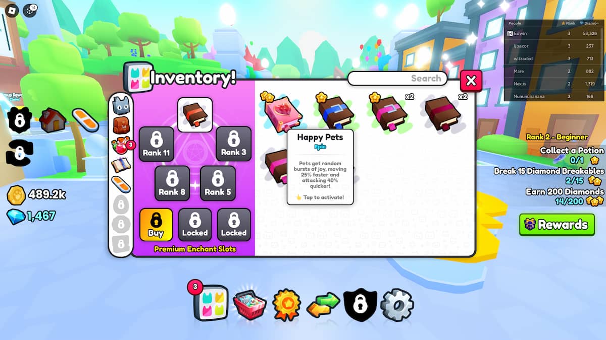 Si tienes algunos encantamientos, puedes seguir los pasos a continuación para equiparlos en Pet Simulator 99.