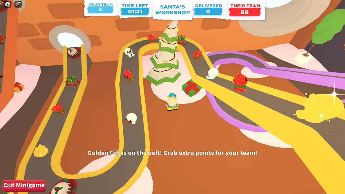 Santa’s Workshop es un minijuego competitivo basado en equipos que recluta jugadores para trabajar como elfos de Santa y ayudar a envolver tantos juguetes como puedan durante un límite de tiempo determinado. Cuando comience el minijuego, tú y tu equipo debéis recolectar varios juguetes y envolverlos en el papel de regalo correcto lo más rápido que podáis. Pero ten cuidado: ¡los jugadores del otro equipo pueden robarte los juguetes de las manos! También esté atento a los juguetes dorados, valen 5 veces más puntos.