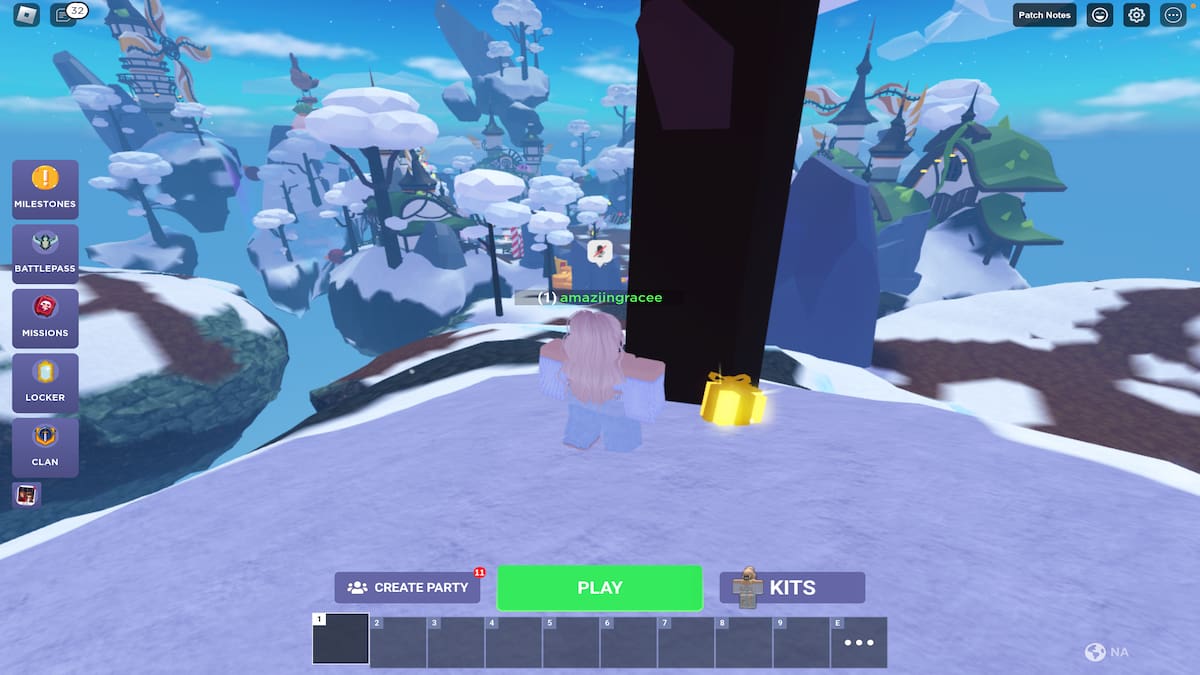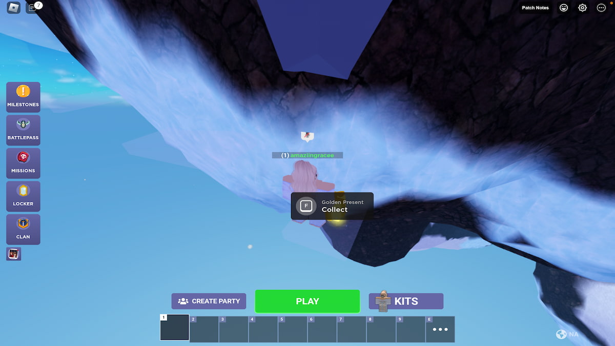 - El octavo regalo se puede encontrar en la isla flotante que se encuentra detrás del Crate Altar. Corre y salta a través de los adornos para llegar a la isla y luego sube a la cima para encontrar el regalo.
