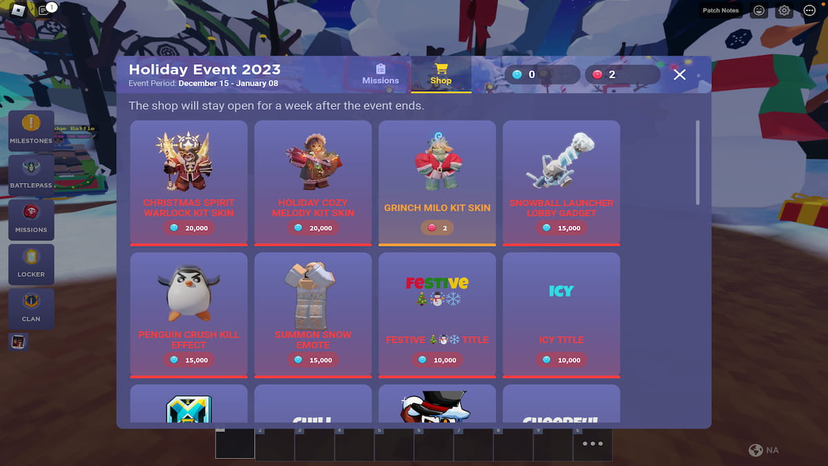Con las monedas reclamadas, haz clic en el botón Comprar en la parte superior del menú y luego busca el diseño del kit Grinch Milo. ¡Esto ahora es todo tuyo!