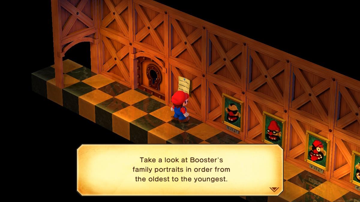 para resolver el Super Mario RPG Booster Tower Portrait Puzzle, debes interactuar con los retratos de las personas según su edad, desde el mayor hasta el más joven. Puede parecer bastante simple, pero la pista y el enigma en sí están bastante alejados.