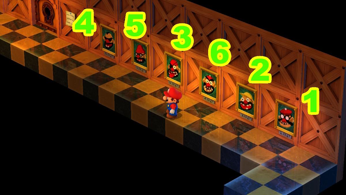 El Super Mario RPG Booster Tower Portrait Puzzle tiene la siguiente solución: 4-5-3-6-2-1. Eso significa que debes interactuar con las imágenes en un orden específico: