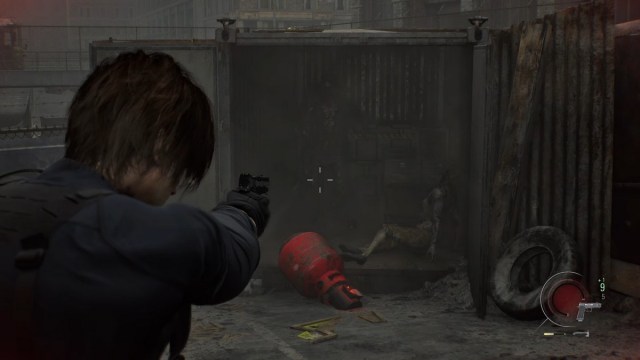 Dentro de uno de los contenedores de BSAA en la calle principal de East Raccoon City. Tienes que subirte a los contenedores que están detrás y luego bajar.