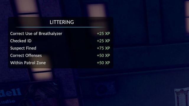 Spelet belönar dig för att du följer protokollet och lägger till de korrekta förseelserna på en misstänkts rapblad. Efter att du har bötfällt och arresterat tillräckligt många brottslingar, kommer du att känna till det rätta tillvägagångssättet som din egen bukbyte.