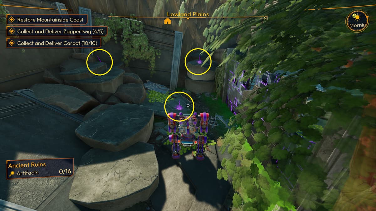 Ubicación de cada artefacto en Lowland Plains (central eléctrica) en Lightyear Frontier