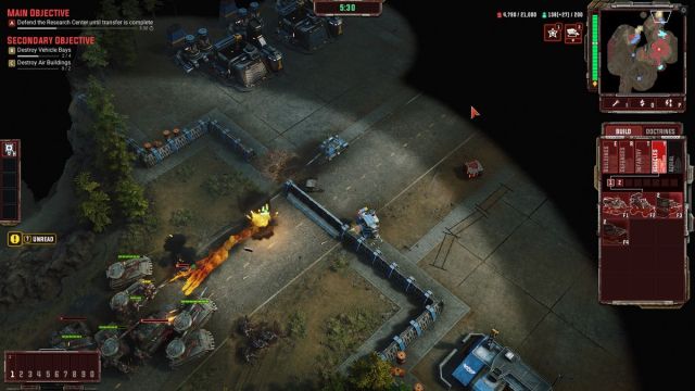 A las 10:10, debes destruir los dos edificios aéreos en el lado norte, cerca de tu base. A la marca de las 13:30 minutos, deberá destruir las cuatro bahías de vehículos, dos en el suroeste y otros dos en la esquina noreste del mapa.