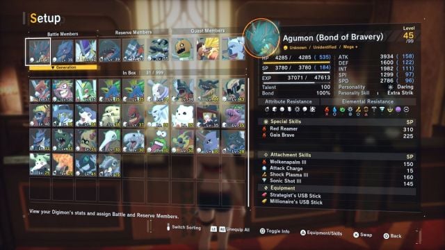 Ви також можете помітити, що максимальний рівень Digimon відрізняється один від одного. Усі ці характеристики пов’язані, і ось як ви можете підвищити максимальний рівень Digimon у DSTS.