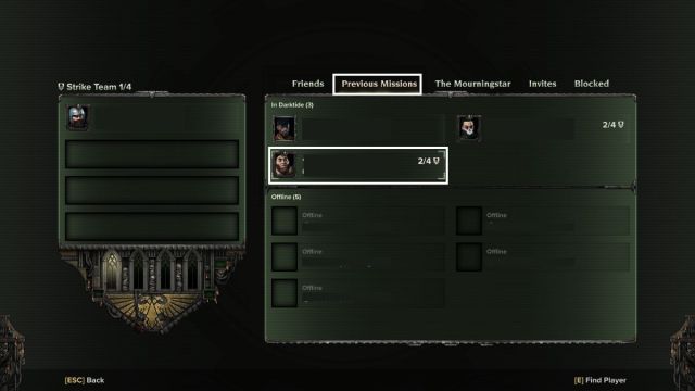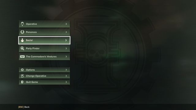• Đánh Bỏ trốn trong Darktide và chọn Xã hội tùy chọn thực đơn