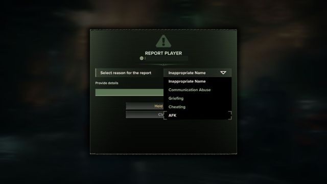 • Bạn có thể chọn một trong các lý do báo cáo sau trong Darktide: