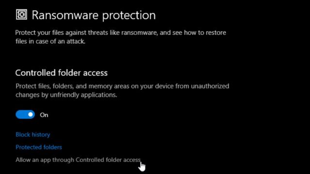 Ngoài ra, bạn nên kiểm tra xem bạn đã bật quyền truy cập thư mục được kiểm soát trong Windows hay chưa và thêm tệp thực thi trò chơi để cho phép nó.