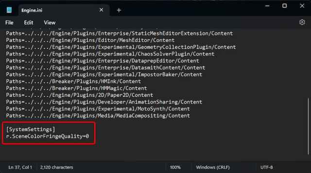 - Ở đây, hãy mở Engine.ini tập tin bằng trình soạn thảo văn bản như Notepad hoặc Notepad++