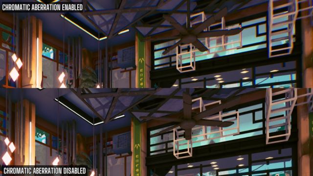 Sau khi hoàn tất, hiệu ứng sẽ bị xóa hoàn toàn khỏi trò chơi và trông sắc nét hơn nhiều. Xin lưu ý rằng mặc dù quang sai màu gây mất tập trung về mặt thị giác nhưng nó là một phần trong cách trình bày của trò chơi. Dưới đây là một số so sánh khác để cho thấy nó được sử dụng quá mức ở mọi nơi.