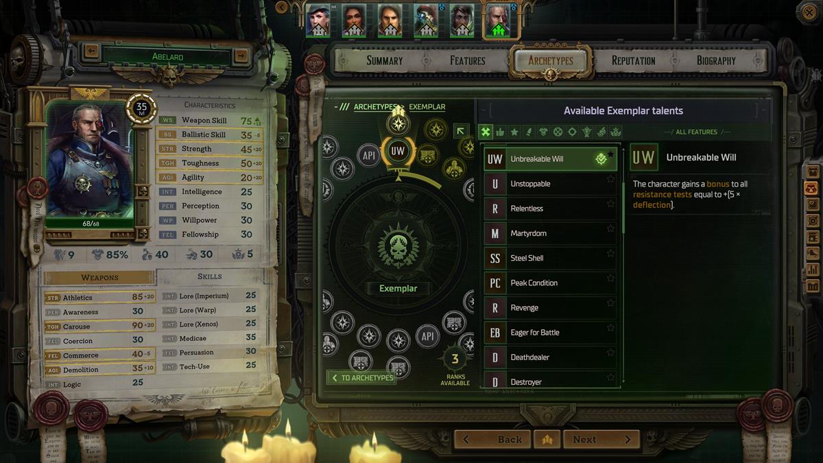 Aparte de lo anterior, hay otras características notables una vez que desbloqueas la clase Exemplar en Warhammer 40K: Comerciante rebelde: