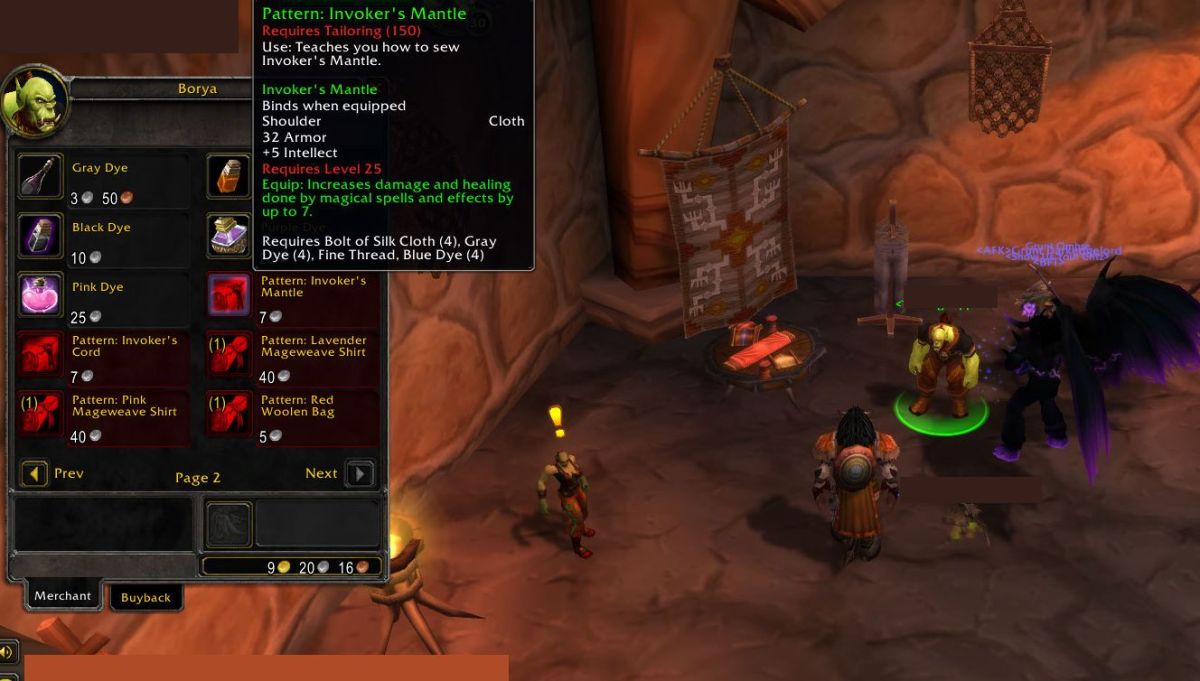 Las recetas tanto para el Manto del Invocador como para el Cordón del Invocador se pueden comprar en Vendedores de suministros de sastrería en Orgrimmar y Darnassus. Las recetas cuestan apenas 7 monedas de plata y requieren materiales fáciles de conseguir.